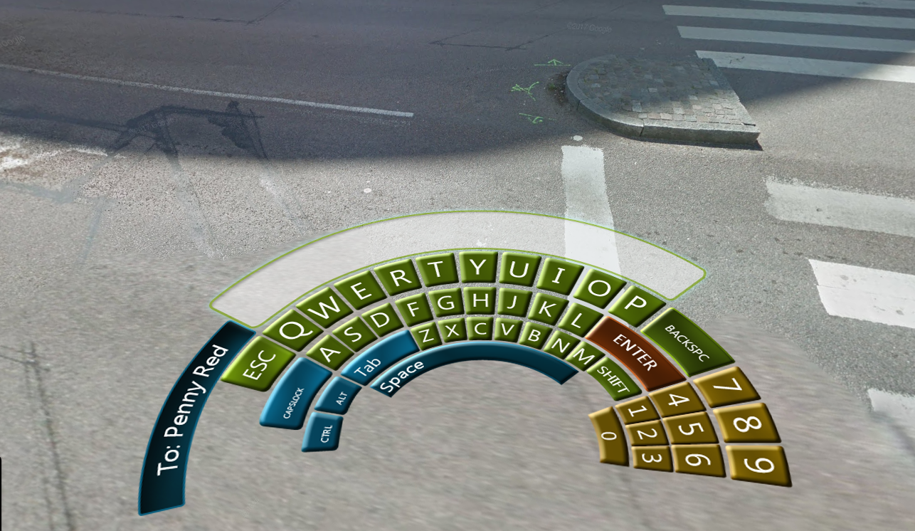 AR Keyboard on ground in front of user 2014